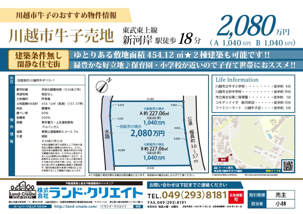 建築条件なし★川越市牛子 売地up 価格 2,080万円 売地 所在地 埼玉県川越市 牛子113-1 交通 東武東上線 新河岸駅 徒歩18分 面積 土地 454.12m² 建蔽率/容積率 60% / 200% 物件番号 100128237035 設備・条件 建築条件無 プロパンガス 物件の詳細を見る