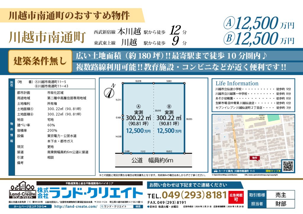 建築条件無し★川越市南通町 売地Ⓑnew