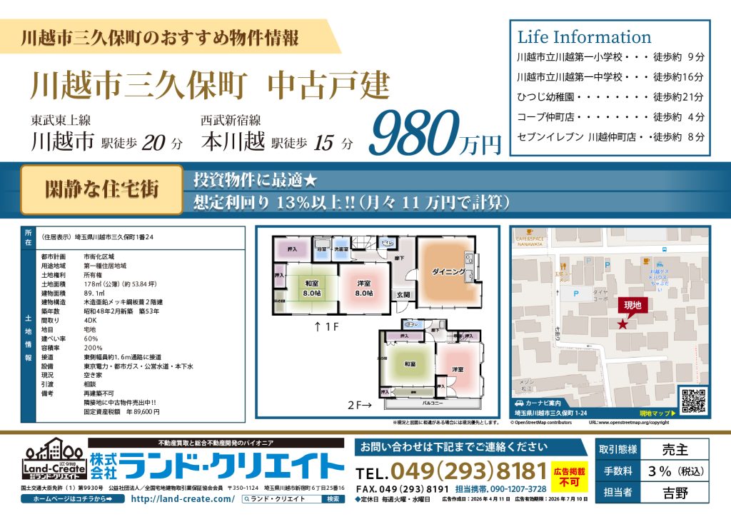 ※物件掲載内容と現況に相違がある場合は現況を優先と致します。